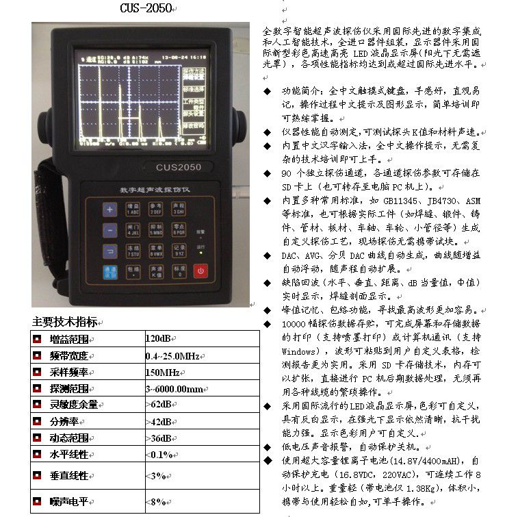 CUS2050全數(shù)字智能超聲波探傷儀