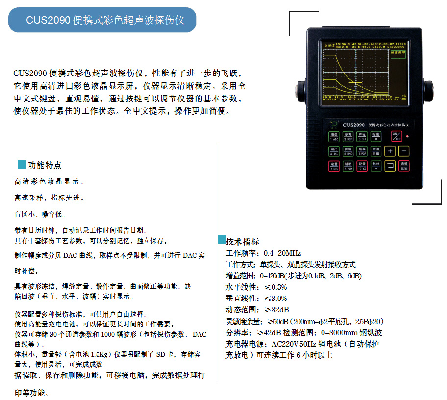 CUS2090彩色數(shù)字式超聲波探傷儀