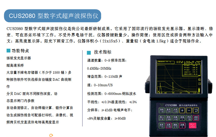 CUS2080高亮度數(shù)字式超聲波探傷儀